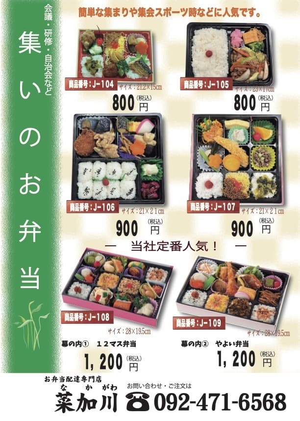 博多駅構内でもご購入できる菜加川の博多駅弁は、団体旅行の駅弁・修学旅行の駅弁に。